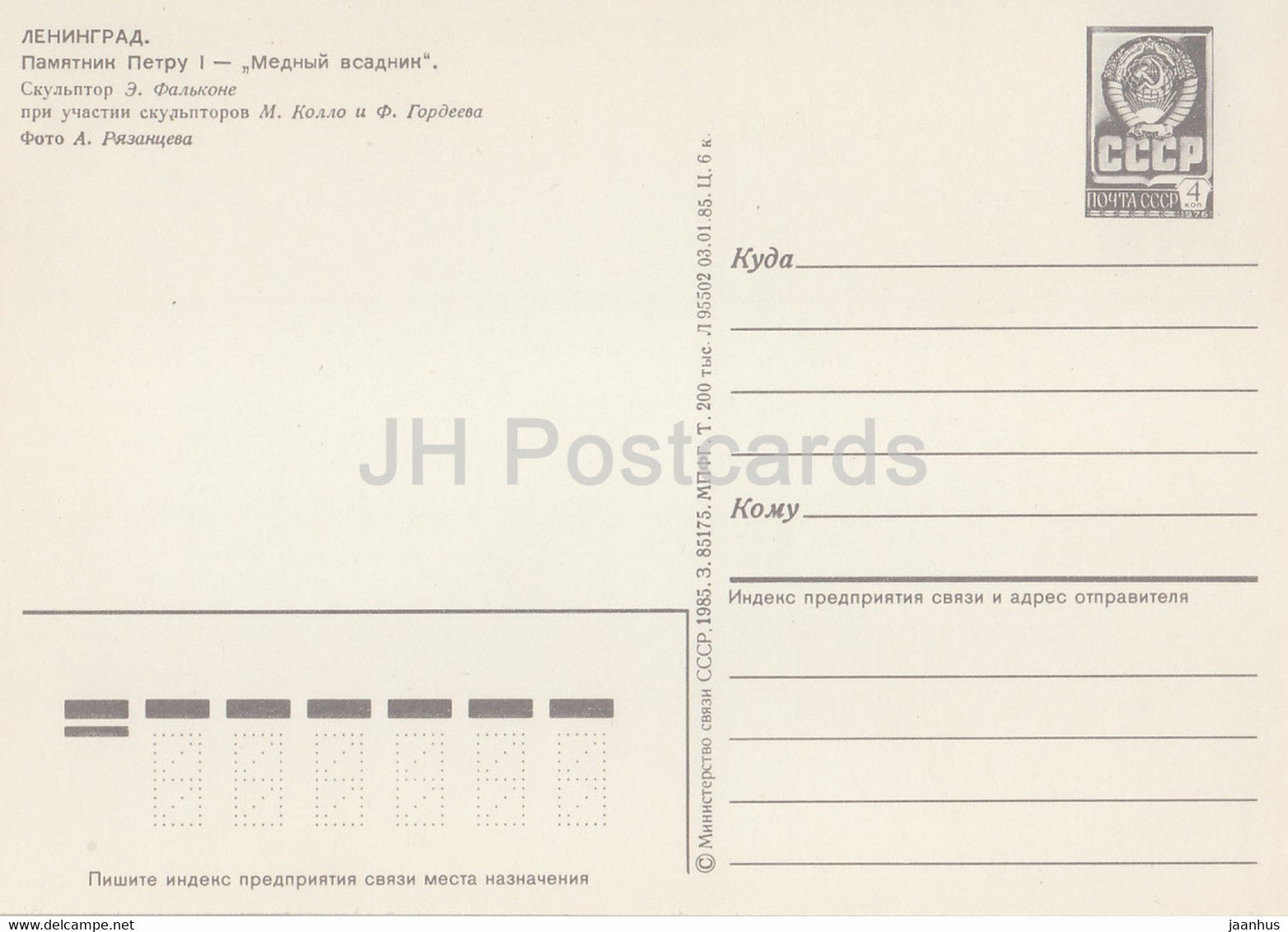 Leningrad - St Petersburg - monument to Peter I - horse - postal stationery - 1985 - Russia USSR - unused