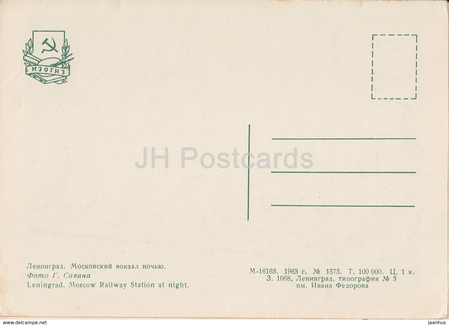 Leningrad - St. Petersburg - Moscow Railway Station at Night - 1963 - Russia USSR - unused