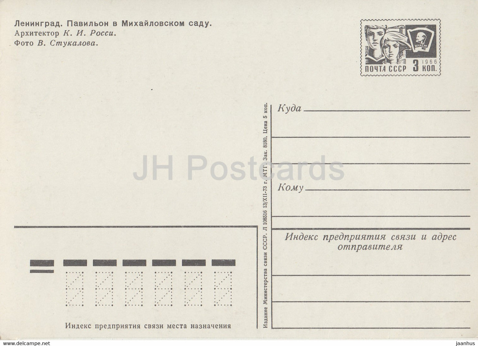 Leningrad - St Petersburg - Pavilion in the Mikhailovskoe Garden - postal stationery - 1973 - Russia USSR - unused