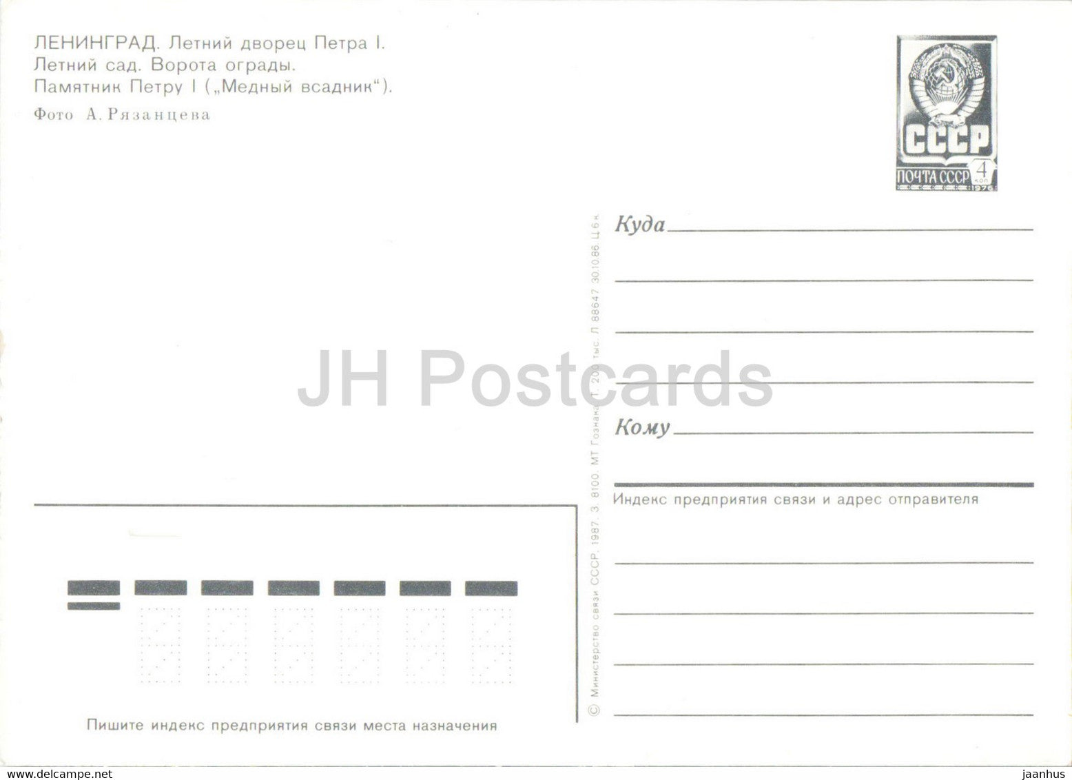 Leningrad - St Petersburg - Peter I Summer Palace - monument - postal stationery - 1987 - Russia USSR - unused