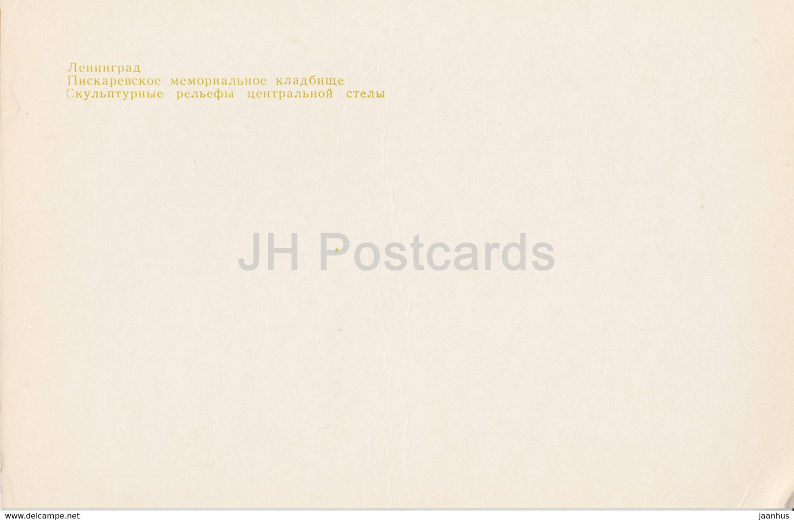 Leningrad - St Petersburg - Piskaryovskoye Memorial Cemetery - sculptural reliefs of stele - 1981 - Russia USSR - unused