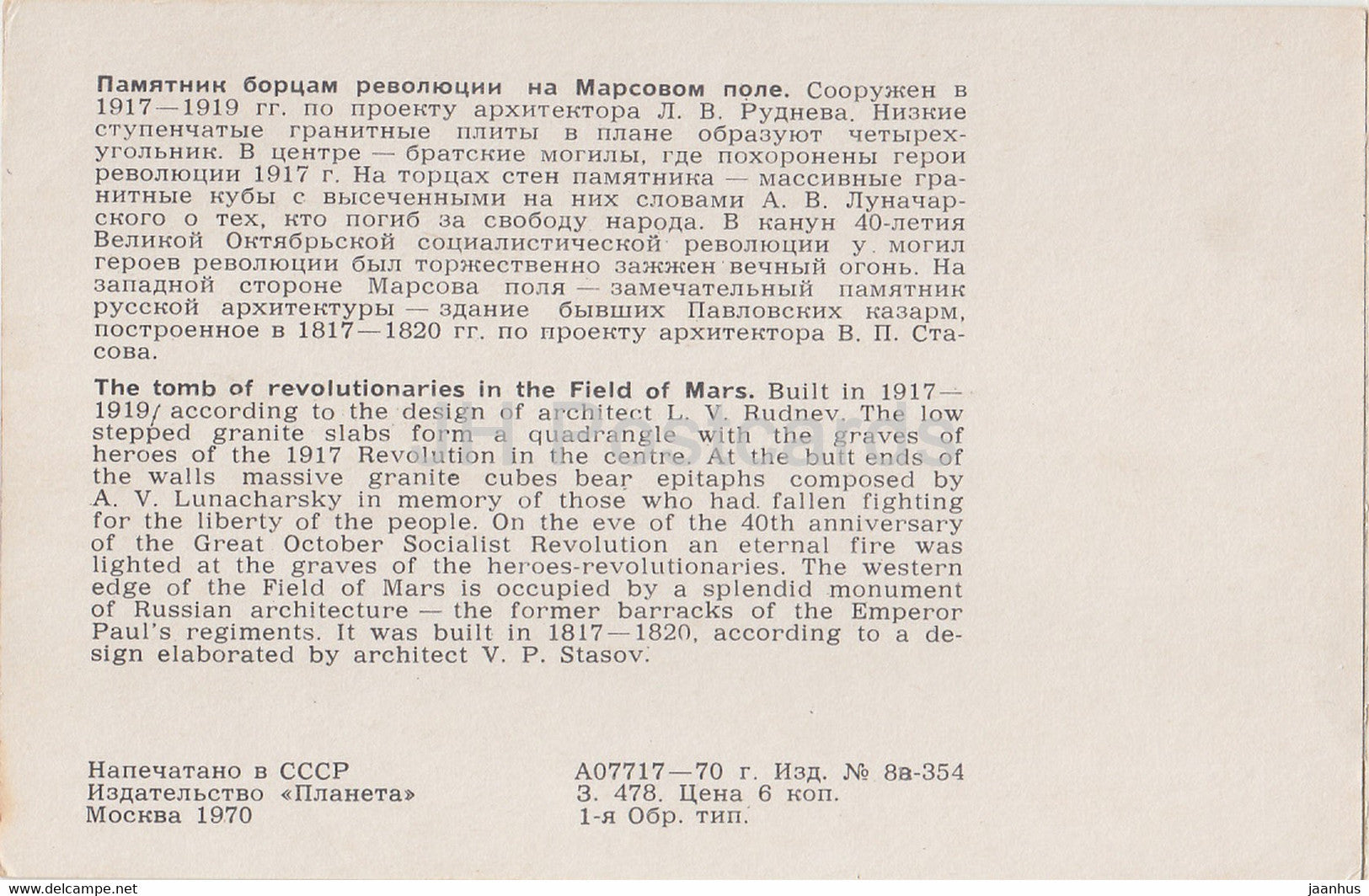 Leningrad - St Petersburg - The Tomb of Revolutionaries in the Field of Mars - 1970 - Russia USSR - unused