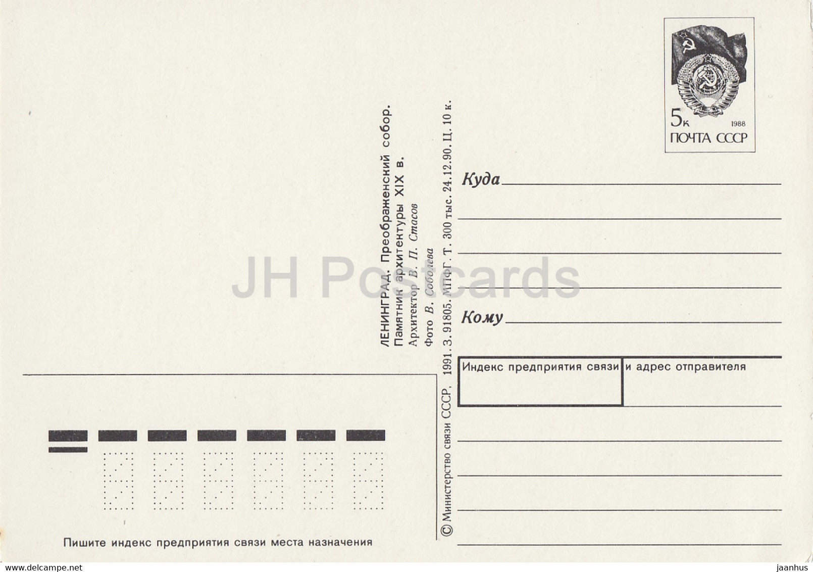 Leningrad - St Petersburg - Transfiguration Cathedral - postal stationery - 1 - 1991 - Russia USSR - unused
