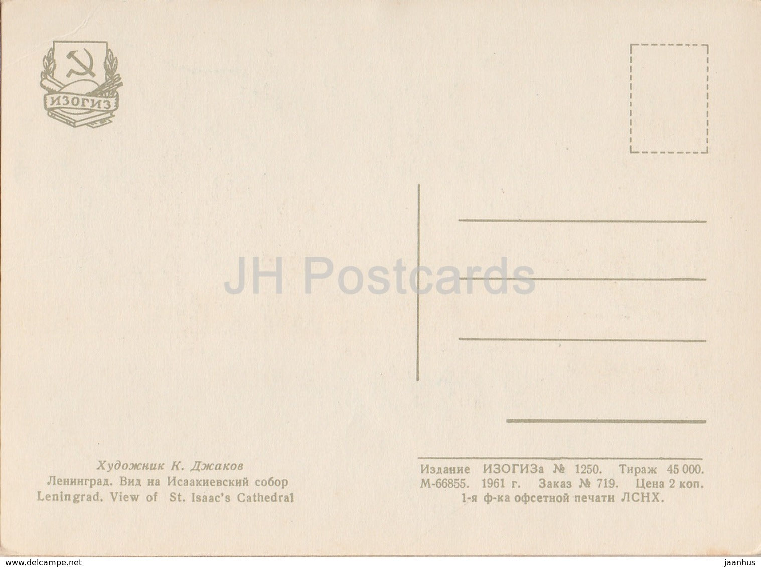 Leningrad - St. Petersburg - View of St. Isaac's Cathedral - illustration by K. Dzhakov - 1961 - Russia USSR - unused