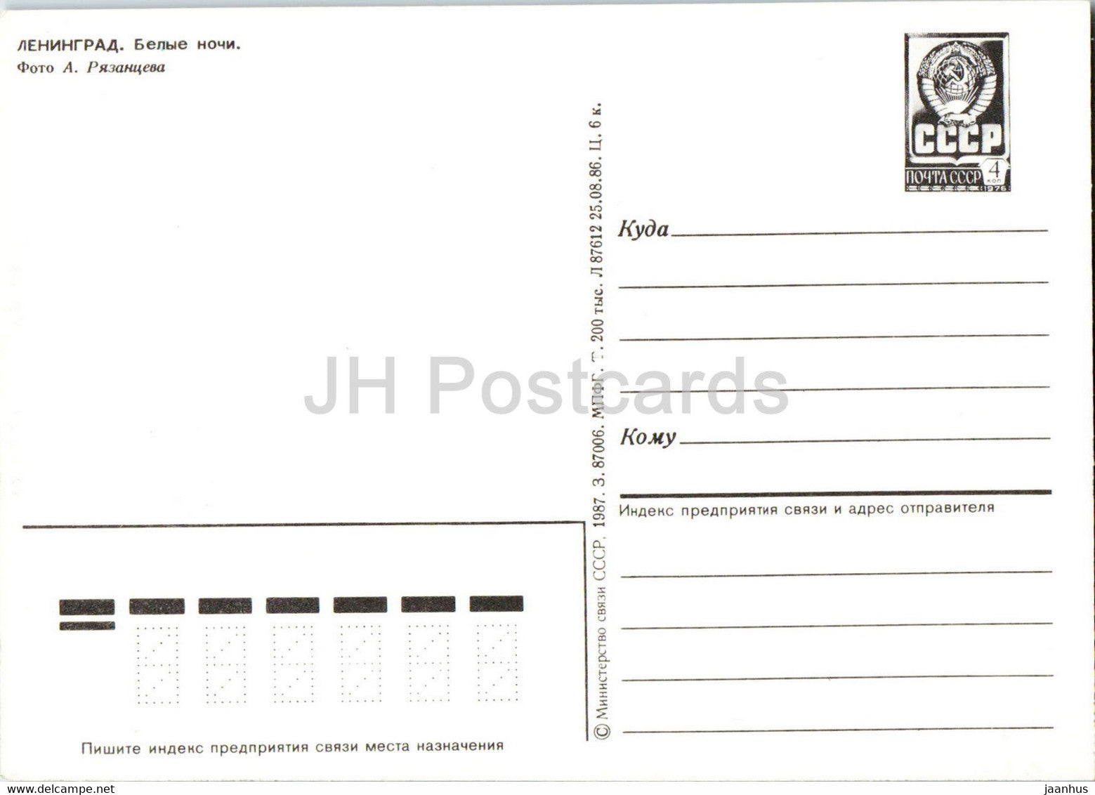 Leningrad - St Petersburg - White Nights - postal stationery - 1987 Russia USSR - unused