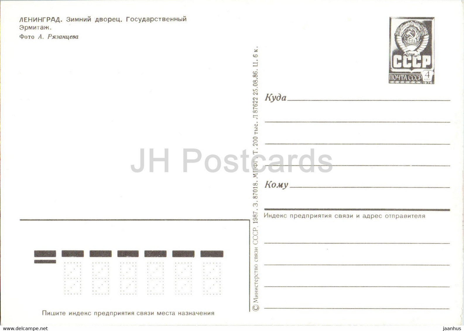 Leningrad - St Petersburg - Winter Palace - State Hermitage - postal stationery - 1987 - Russia USSR - unused