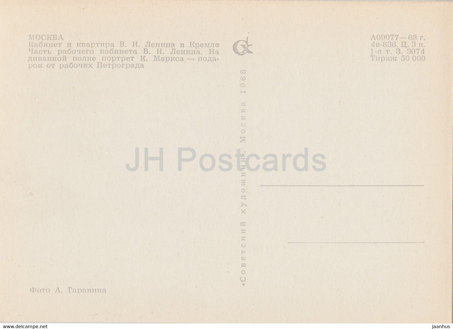 Lenin's study and apartment in the Kremlin - Part of the study - Karl Marx portrait - 1968 - Russia USSR - unused