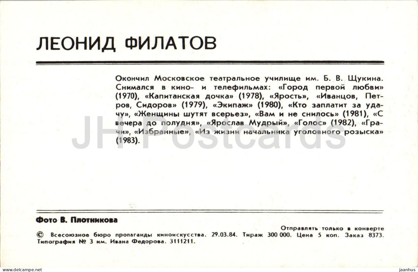 Leonid Filatov - Soviet - Russian actor - 1984 - Russia USSR - unused