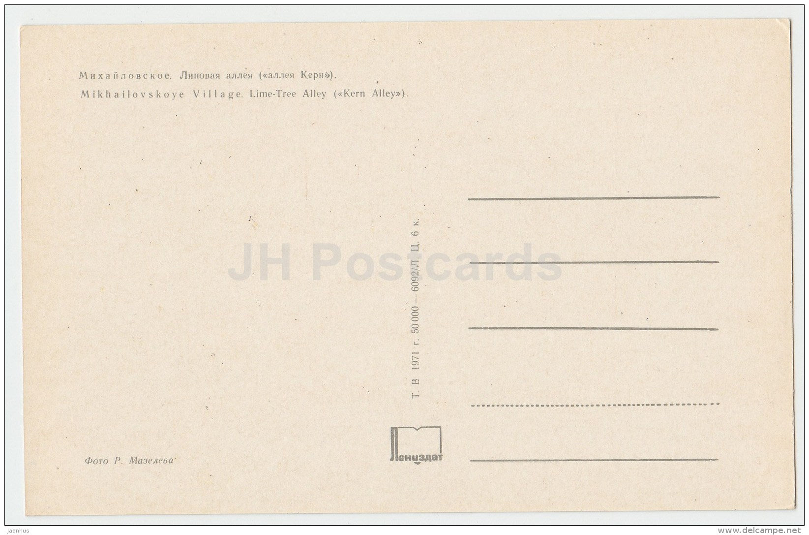 Lime tree alley - Kern alley - Mikhailovskoye - State museum reserve of Pushkin - 1971 - Russia USSR - unused