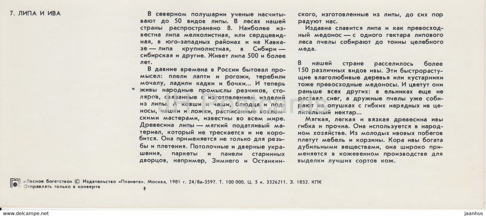 linden and willow - bee - Forest Wealth - 1981 - Russia USSR - unused