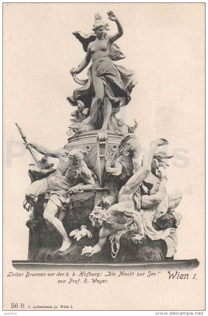 Linker Brunnen vor der k. k. Hofburg: Die Macht zur See von - Wien - Vienna - Austria - old postcard - unused