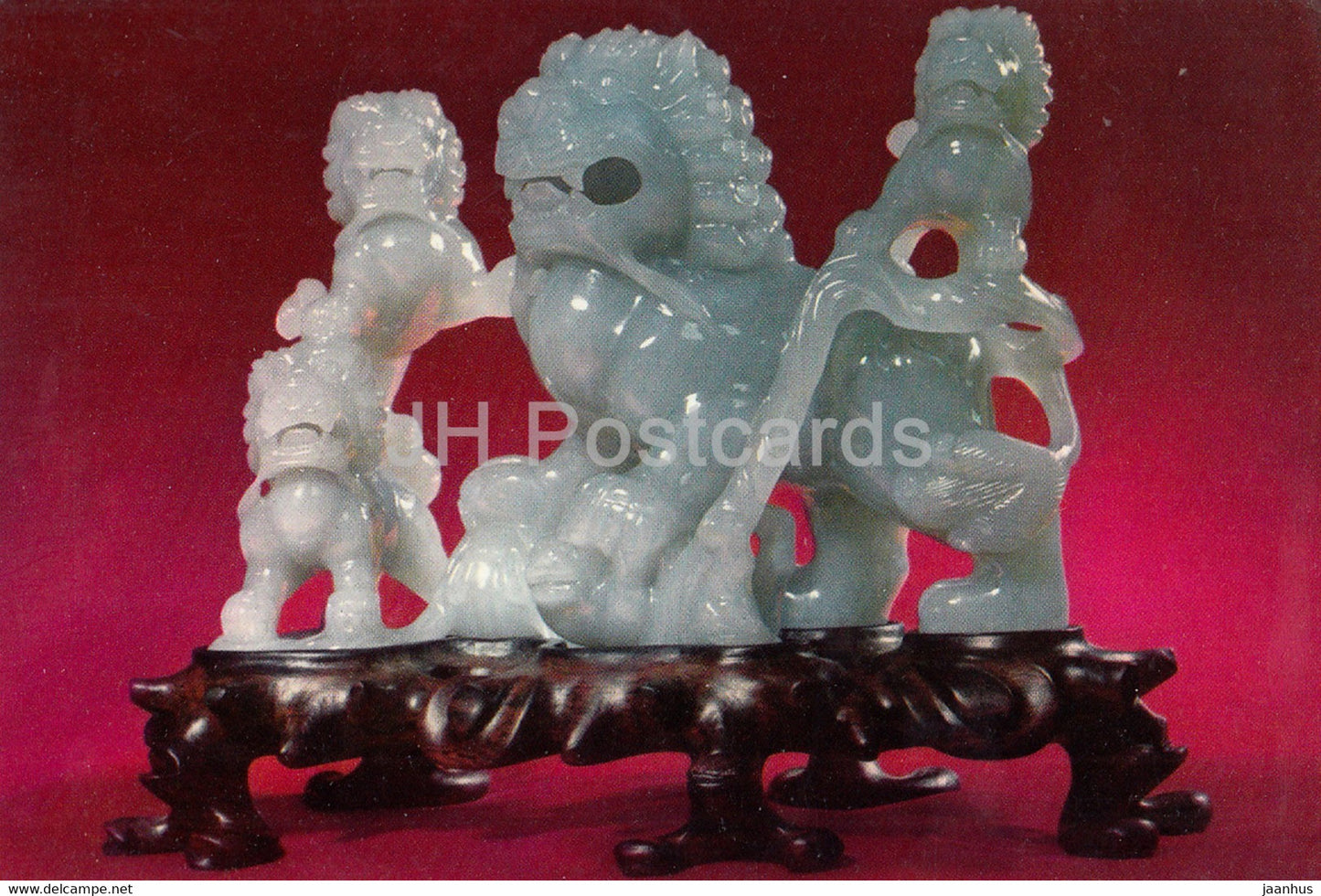 lion and lion cubs - emerald - China Handicraft - Esperanto - 1964 - China - unused