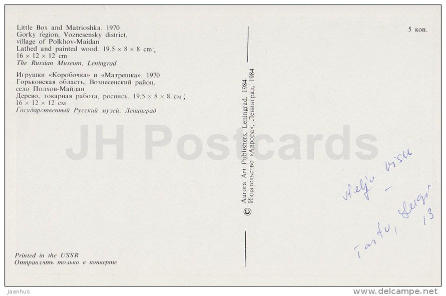 Little Bow and Matryoshka , Gorky Region - Russian Folk Toys - 1984 - Russia USSR - unused