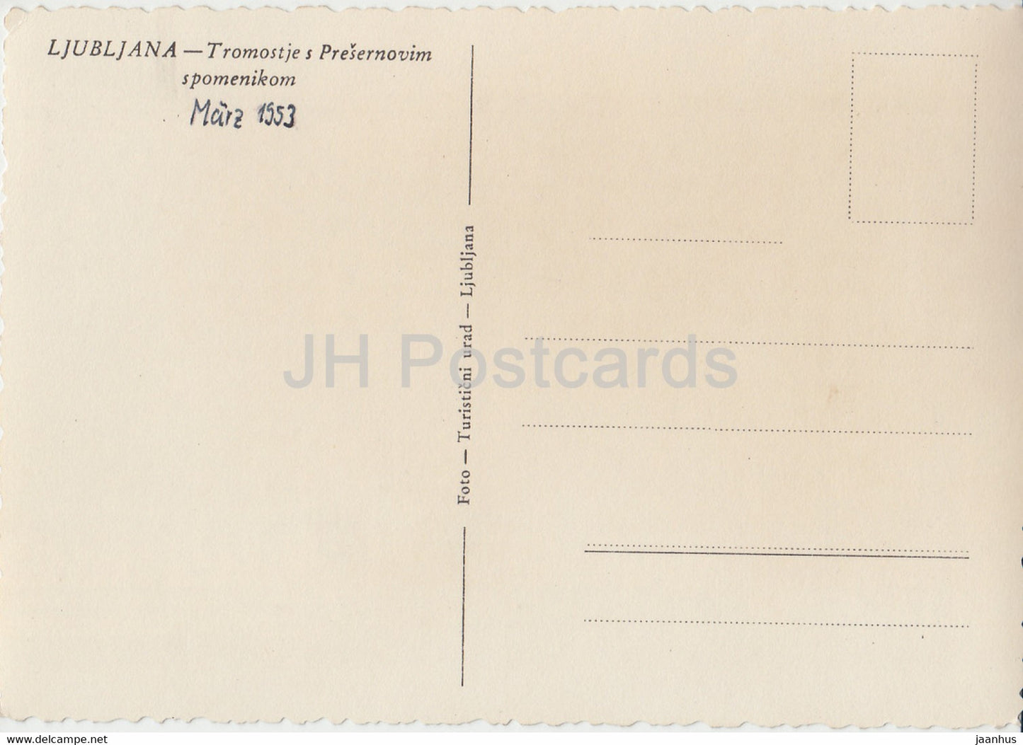 Ljubljana - Tromostje s Presernovim spomenikom - bridge - monument - 1953 - Yugoslavia - Slovenia - used