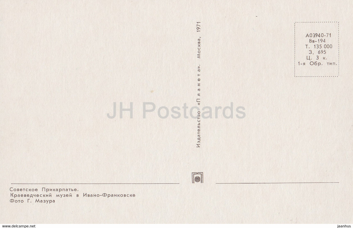 Local lore museum in Ivano-Frankivsk - Carpathian Mountains - Carpathians - 1971 - Ukraine USSR - unused