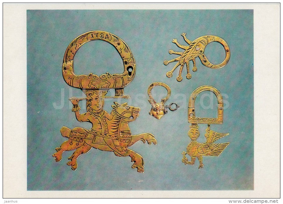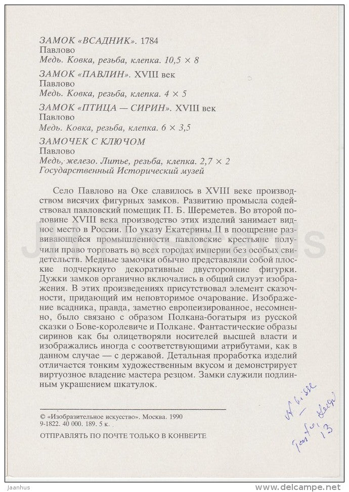 Locks - Rider , Peacock , Bird Sirin - Copper Art in Russia - 1990 - Russia USSR - unused