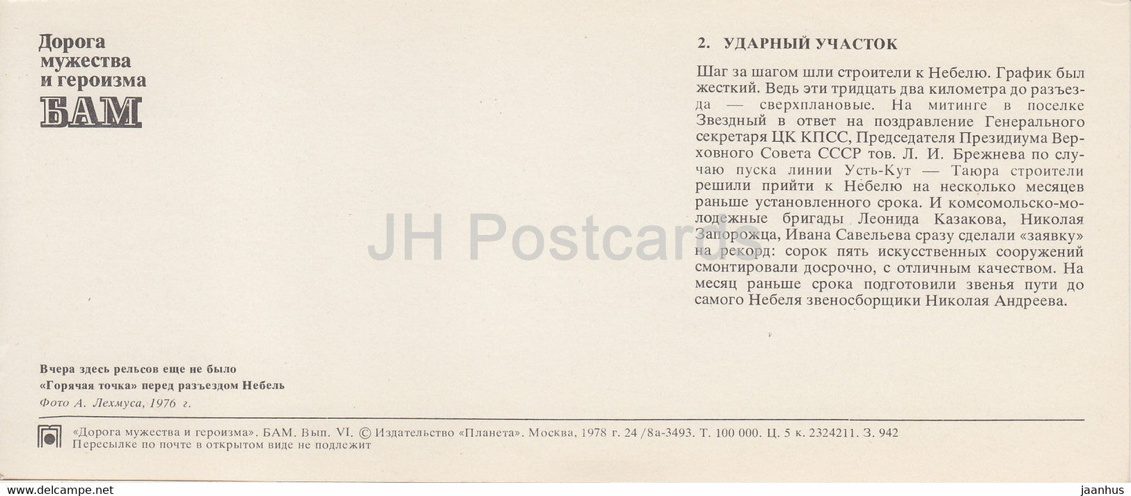 locomotive - 1 - BAM - Baikal-Amur Mainline , construction of the railway - 1978 - Russia USSR - unused