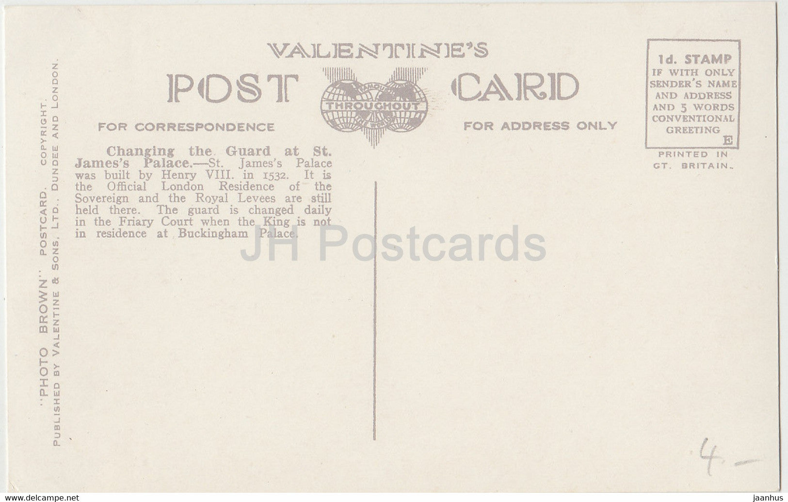 London - Changing Guard - St James Palace - Valentine - 5697 - old postcard - England - United Kingdom - unused