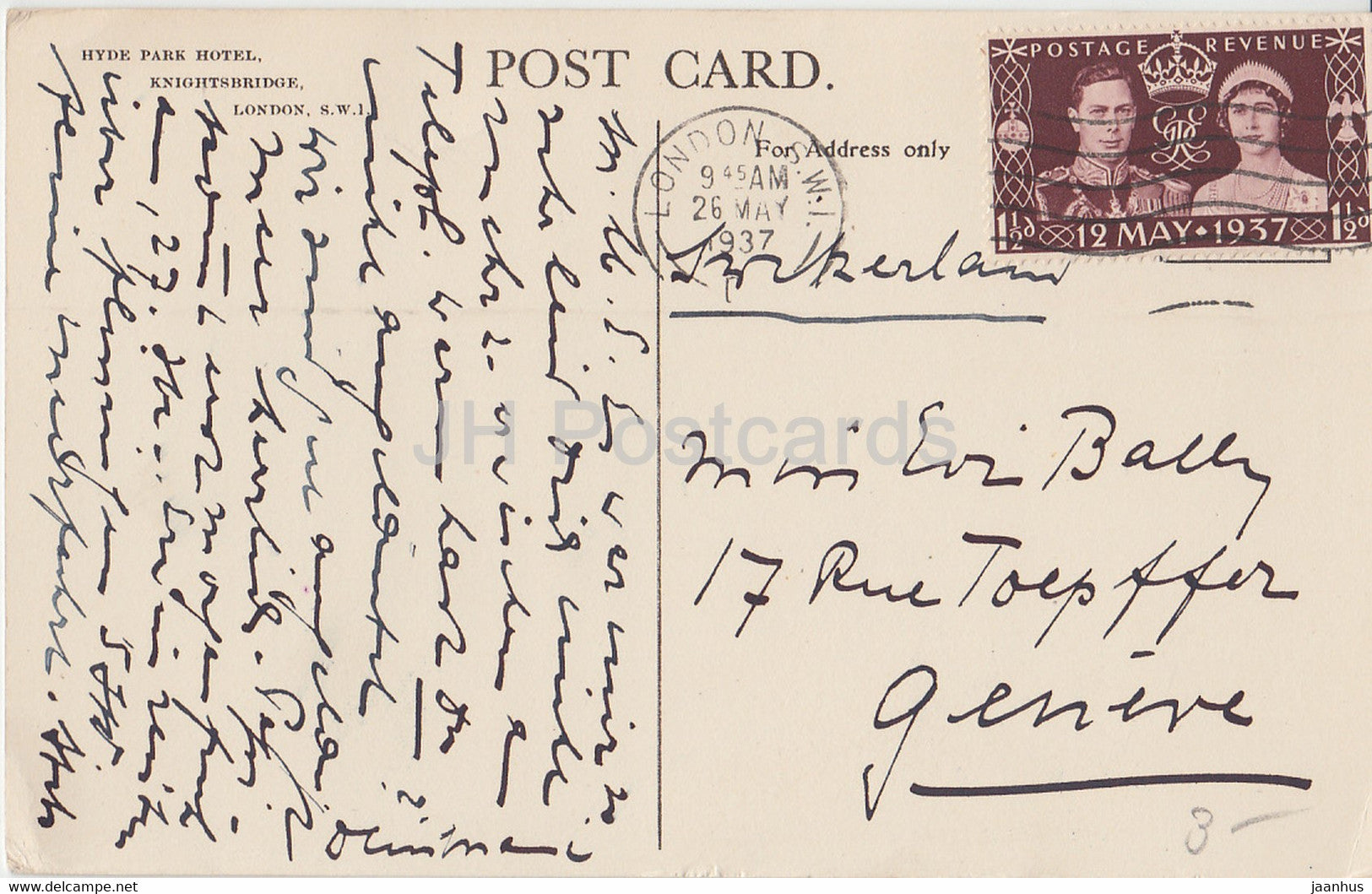London - Hyde Park Hotel - Knightsbridge - old postcard - 1937 - England - United Kingdom - used
