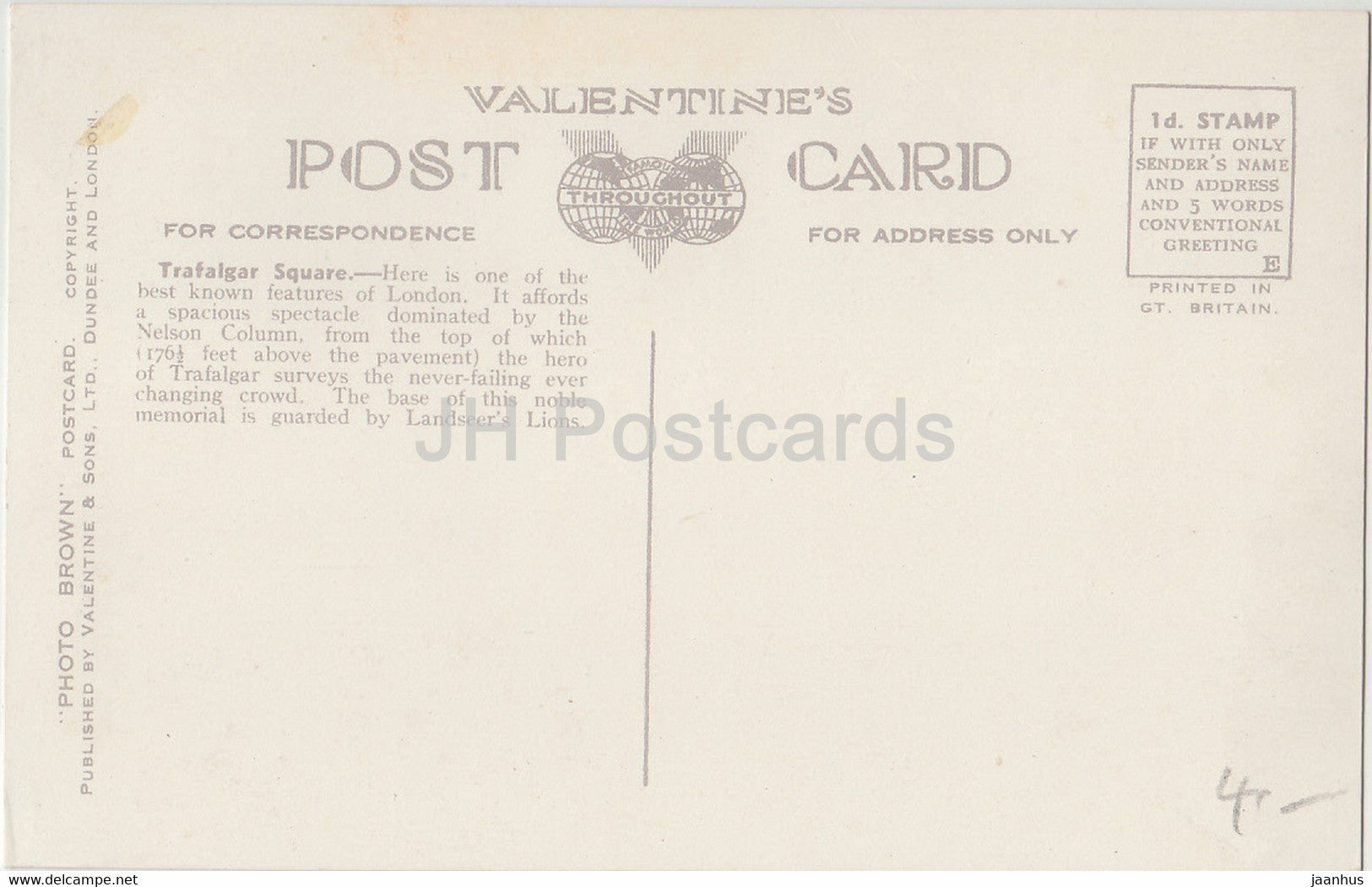 London - Trafalgar Square and Whitehall - Valentine - 209385 - old postcard - England - United Kingdom - unused