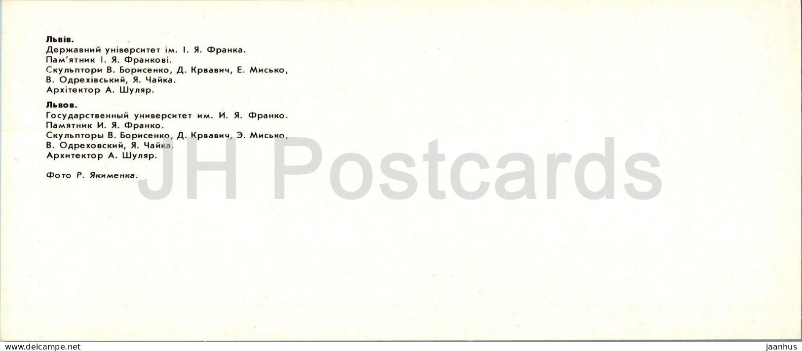 Lviv - I. Franko State University - monument to Ukrainian poet Ivan Franko - 1984 - Ukraine USSR - unused