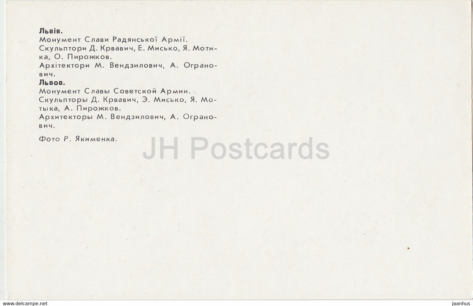 Lviv - Lvov - Monument of Glory of Soviet Army - 1981 - Ukraine USSR - unused
