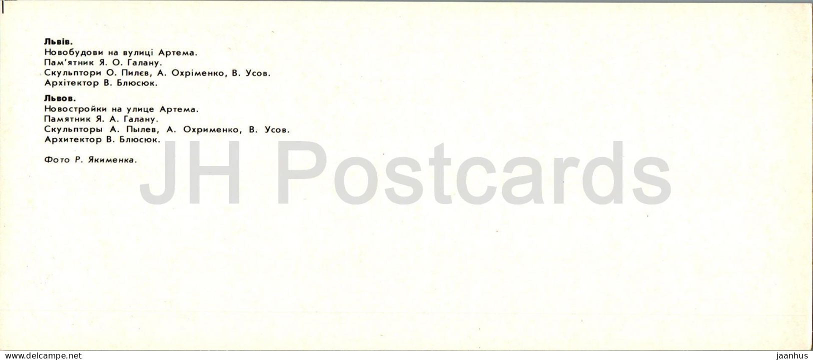 Lviv - new dwelling houses at the Artyem street - monument ti Ukrainian writer Y. Halan - 1984 - Ukraine USSR - unused