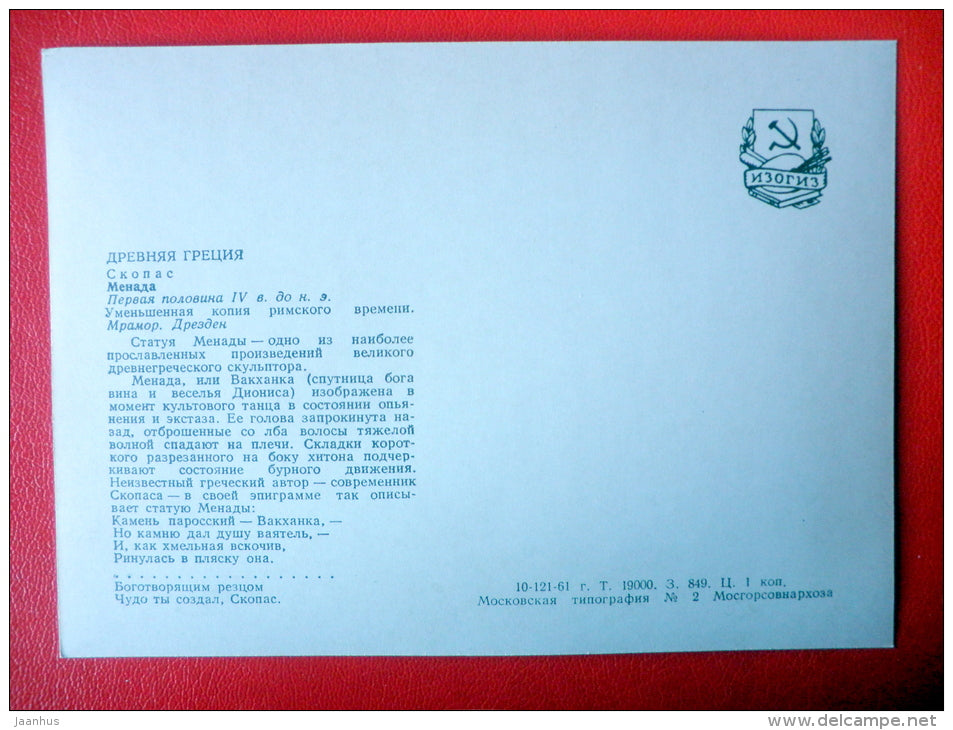 Maenad by Scopas , IV century BC - Ancient Greece - Antique art - 1961 - Russia USSR - unused
