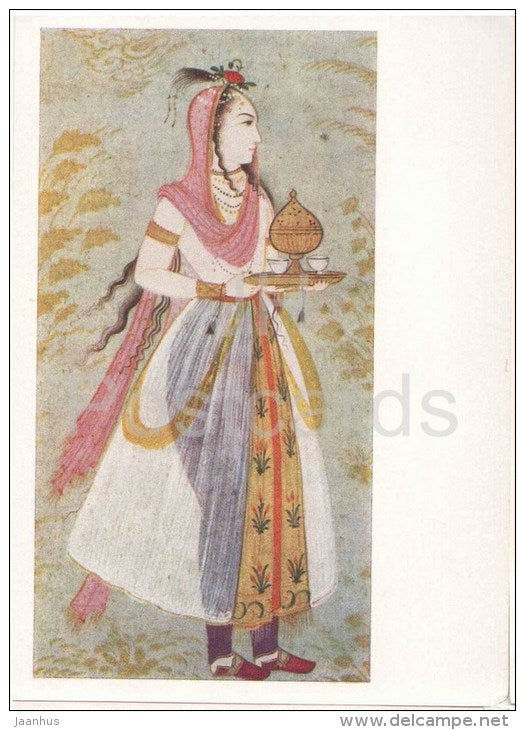 Maid , Mughal School - woman - Indian Miniature - India - 1957 - Russia USSR - unused
