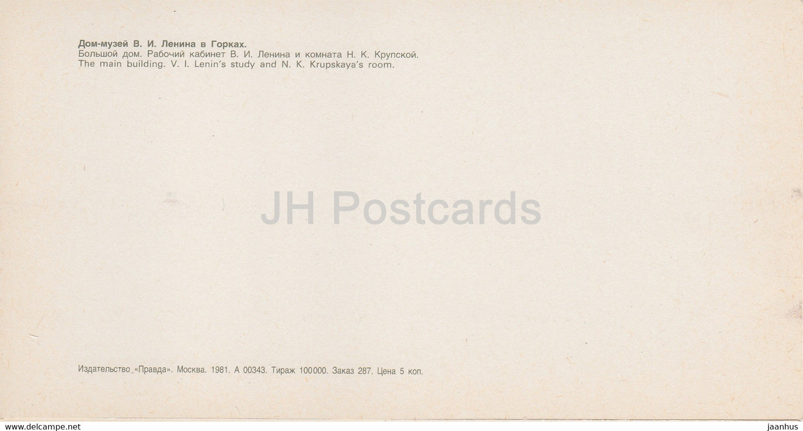 Main Building - Lenin's Study - Krupskaya's Room - Lenin's House Museum - Gorki Leninskiye - 1981 - Russia USSR - unused