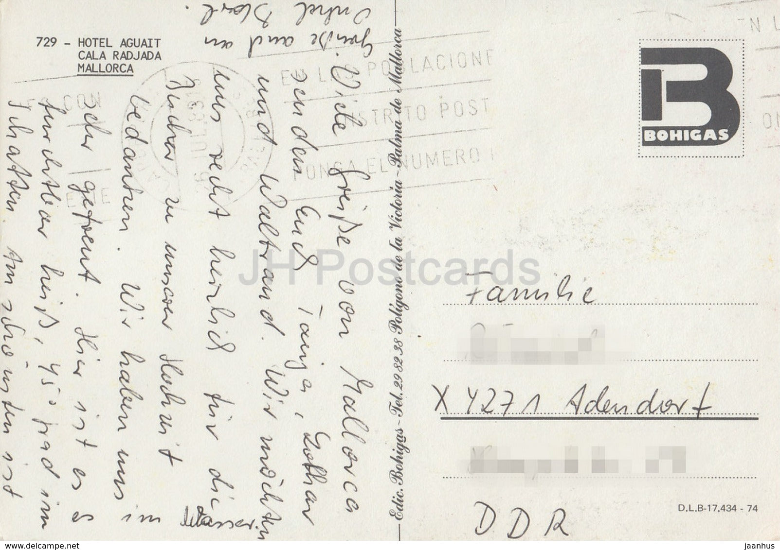 Mallorca - hotel Aguait - Cala Radjada - 729 - 1983 - Spain - used