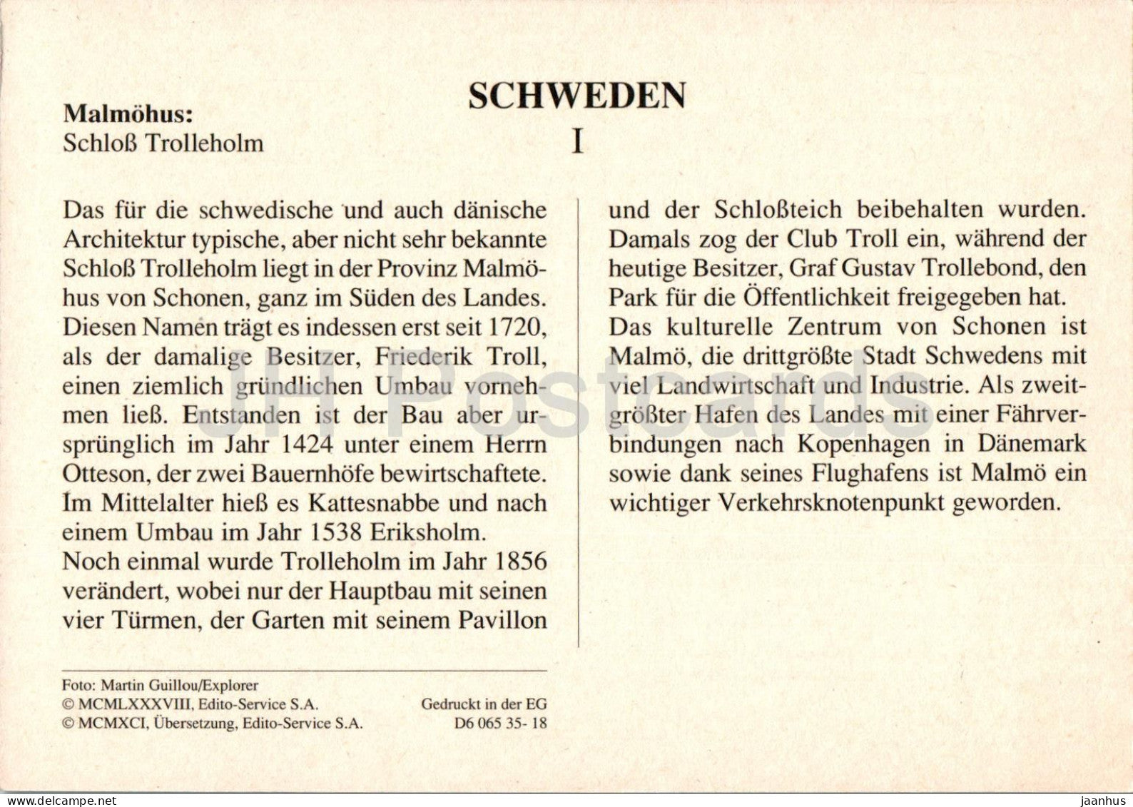 Malmohus - Trolleholm castle - I - Sweden - unused