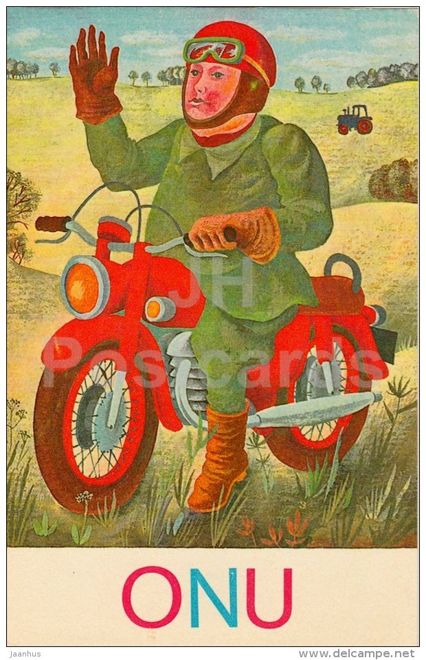 man - motorbike - I am Reading - Teaching reading to children by J. Tammsaar - 1980 - Estonia USSR - unused