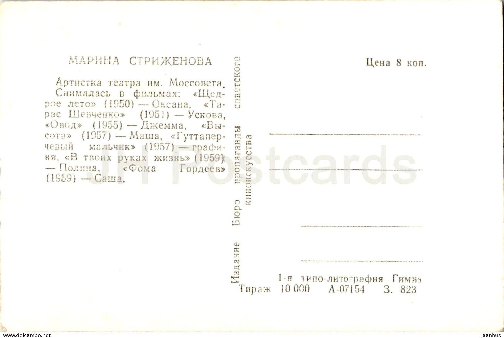 Marina Strizhenova - Soviet - Russian movie actress - Russia USSR - unused