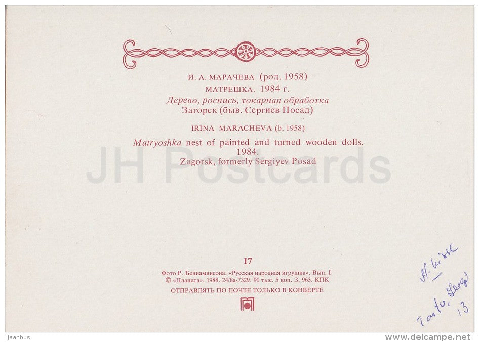 Matryoshka nest of painted and turned wooden dolls , 1984 - Russian Folk Toy - 1988 - Russia USSR - unused
