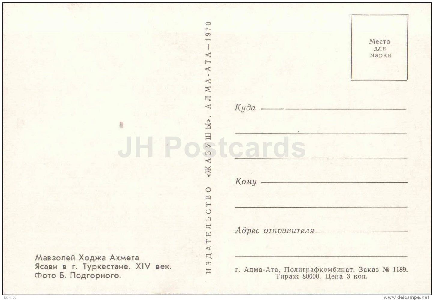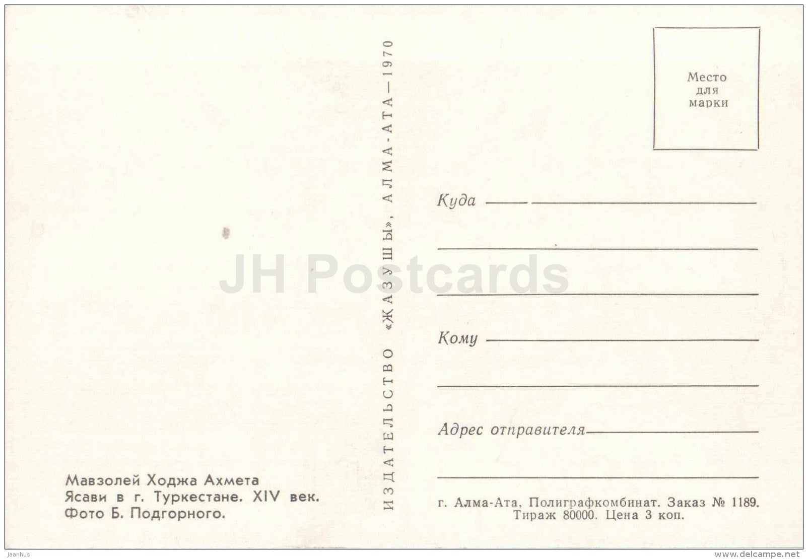 Mausoleum of Khoja Ahmed Yasawi - 1970 - Kazakhstan USSR - unused