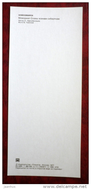 memorial to honor soldiers Siberians - Novosibirsk - 1977 - Russia USSR - unused