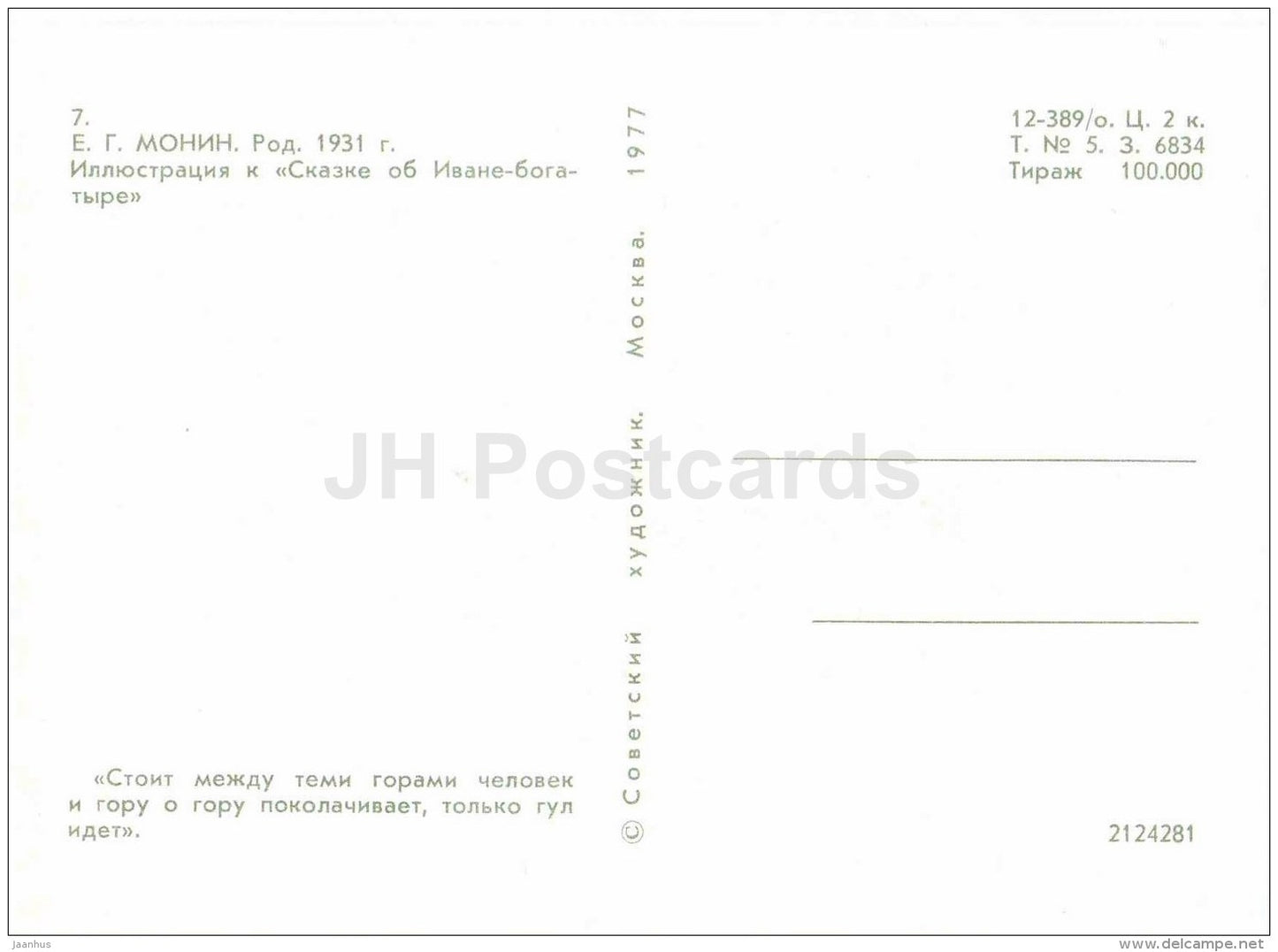 men - Tale of Ivan Bogatyr - russian fairy tale - 1977 - Russia USSR - unused