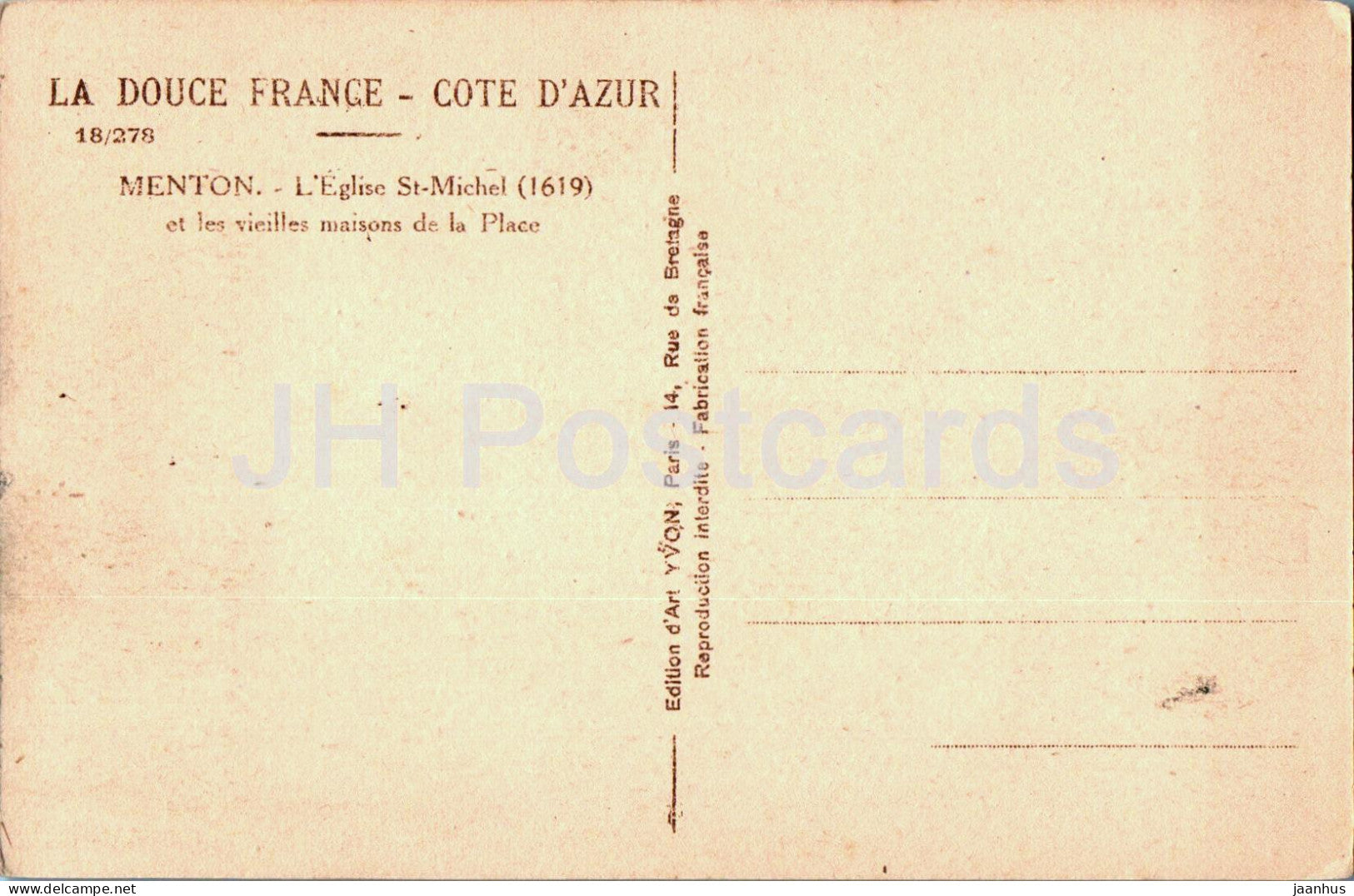 Menton - L'Eglise St Michel - et les vieilles maisons - church - La Douce France - old postcard - France - unused