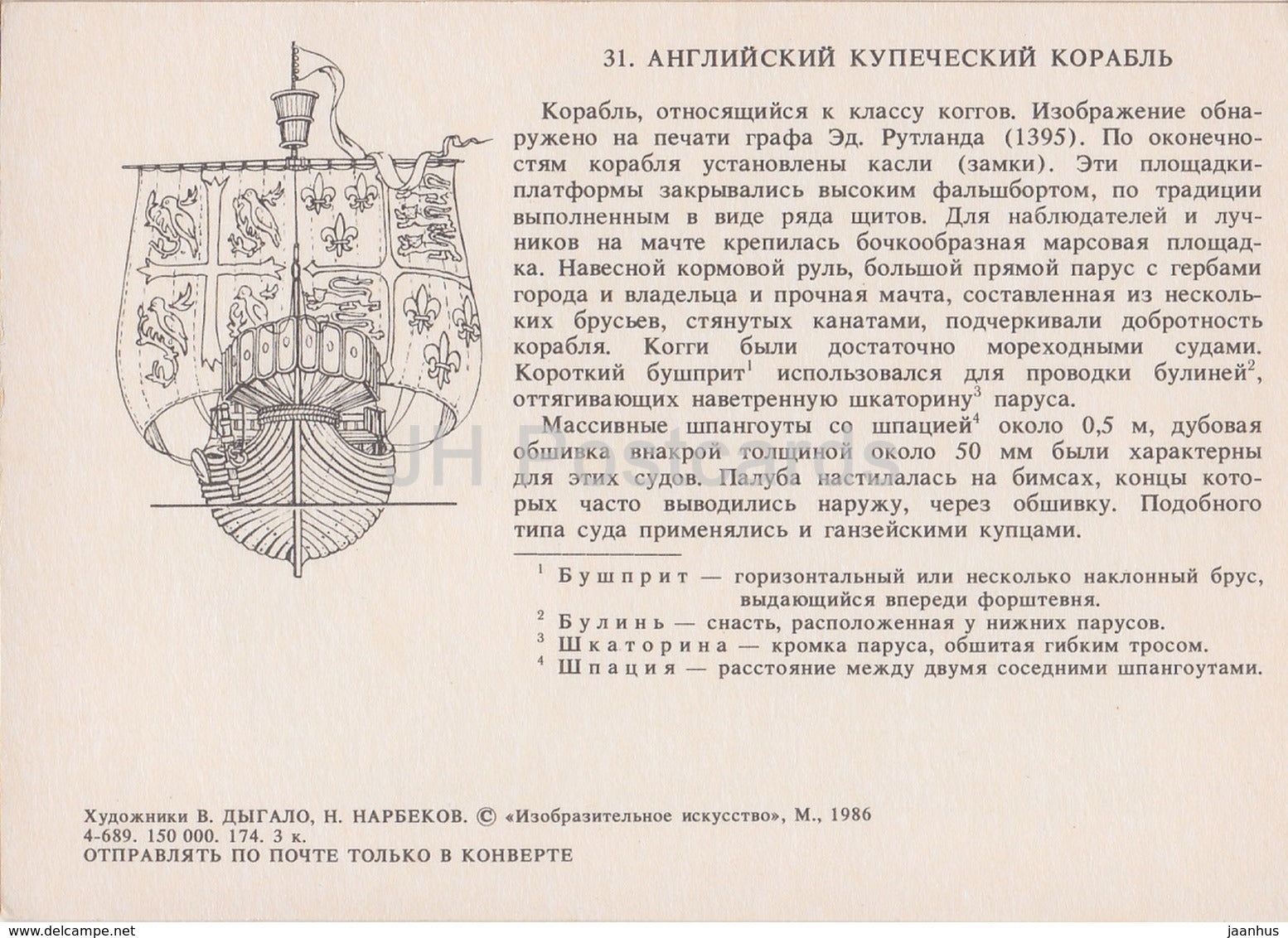 merchant ship of England - illustration - 1986 - Russia USSR - unused