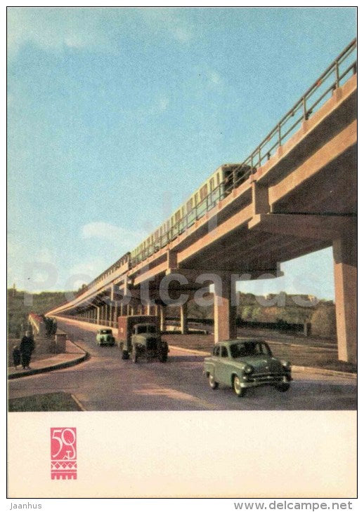 metro bridge over Dnieper river - car Moskvich - truck - Kyiv - Kiev - 1967 - Ukraine USSR - unused