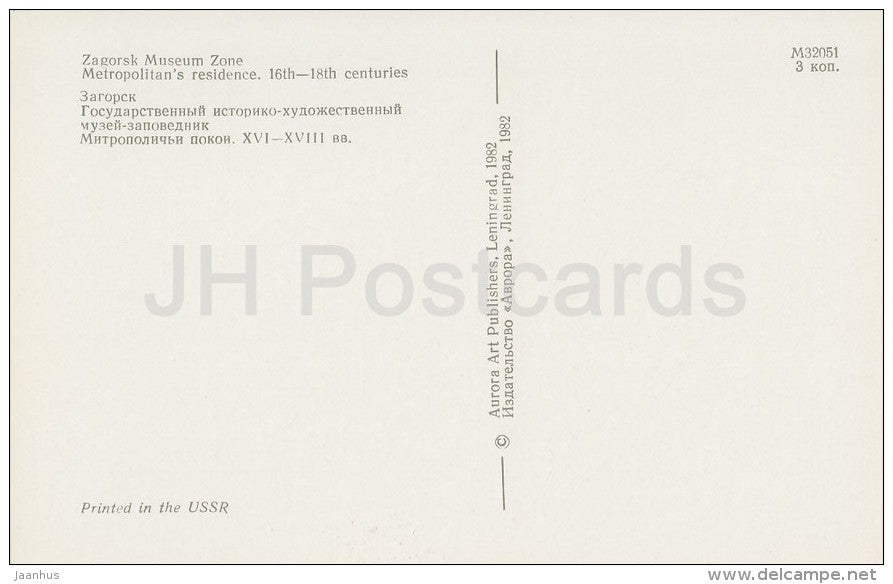 Metropolitan´s Residence - Zagorsk Museum Zone - 1982 - Russia USSR - unused