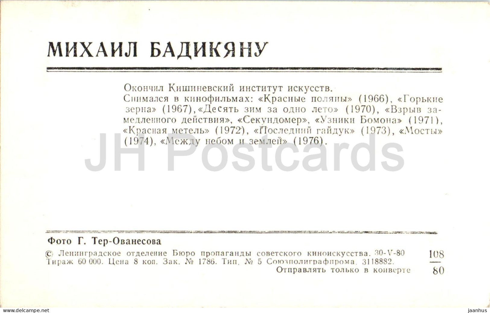 Mikhail Badikyanu - Soviet - Moldavian movie actor - 1980 - Russia USSR - unused