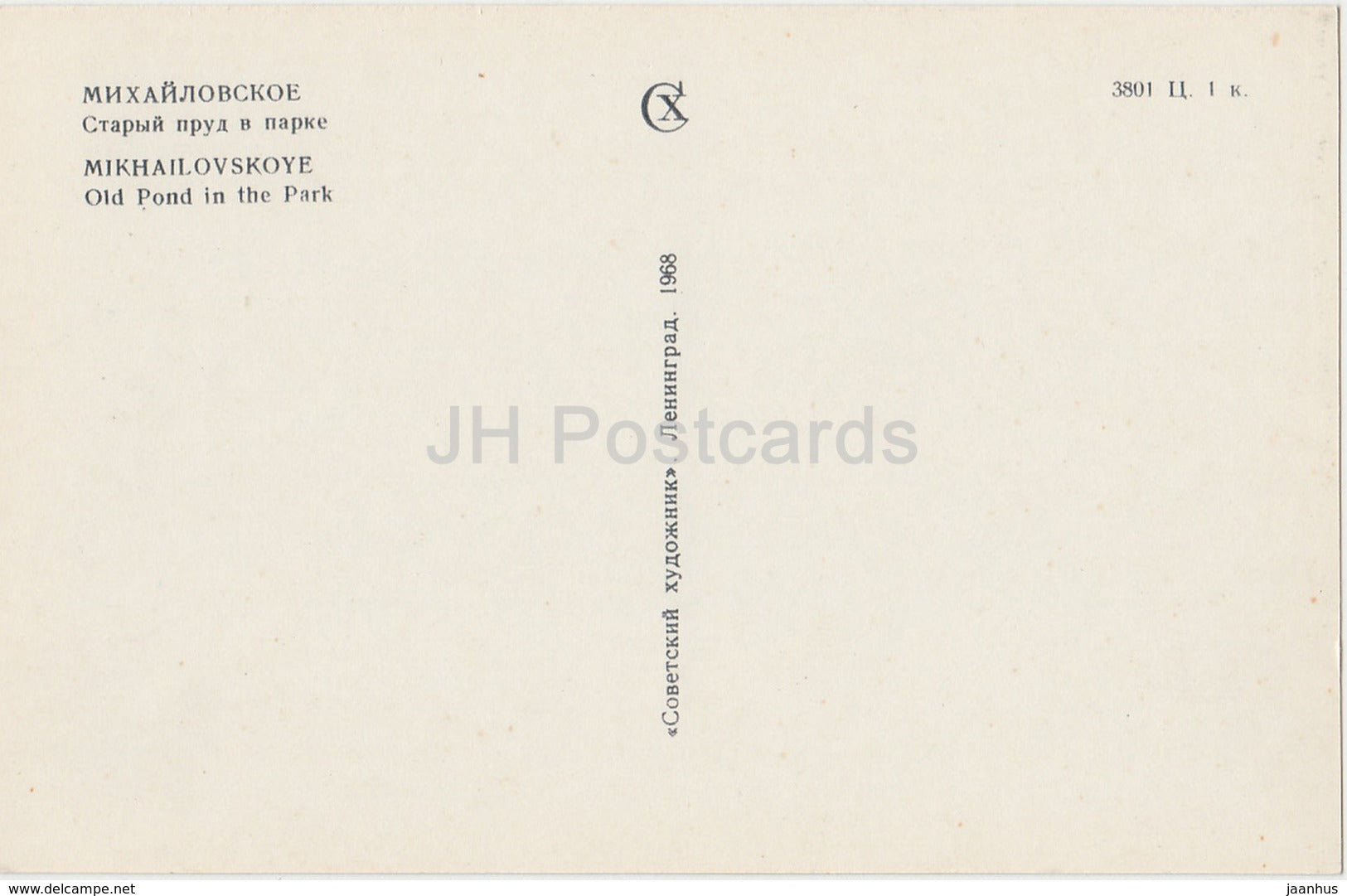 Mikhailovskoye - Old Pond in the Park - Pushkin Nature Reserve - 1968 - Russia USSR - unused