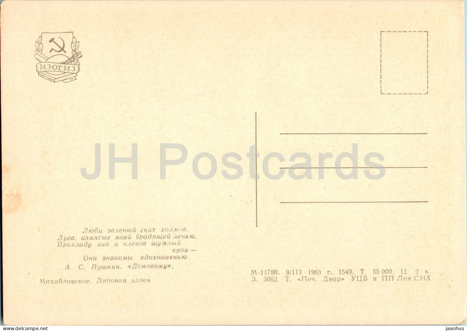 Mikhaylovskoye - Linden Alley - 1963 - Russia USSR - unused