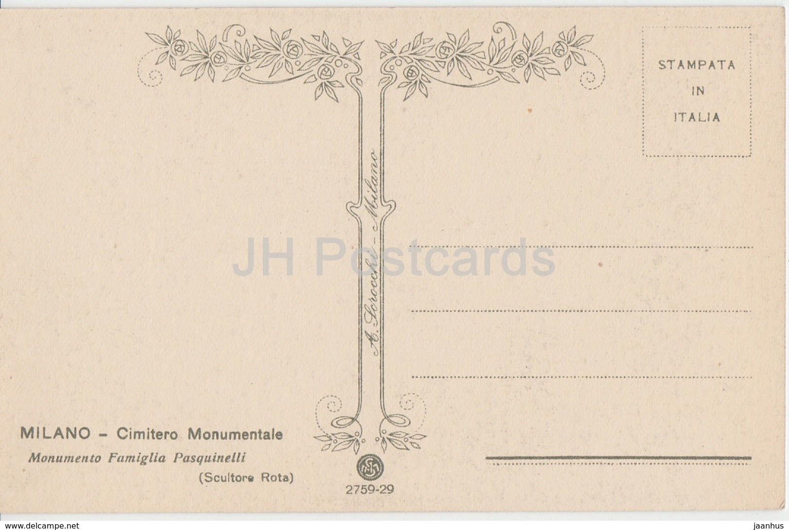 Milano - Milan - Cimitero Monumentale - Monumento Famiglia Pasquinelli - cemetery - old postcard - Italy - unused