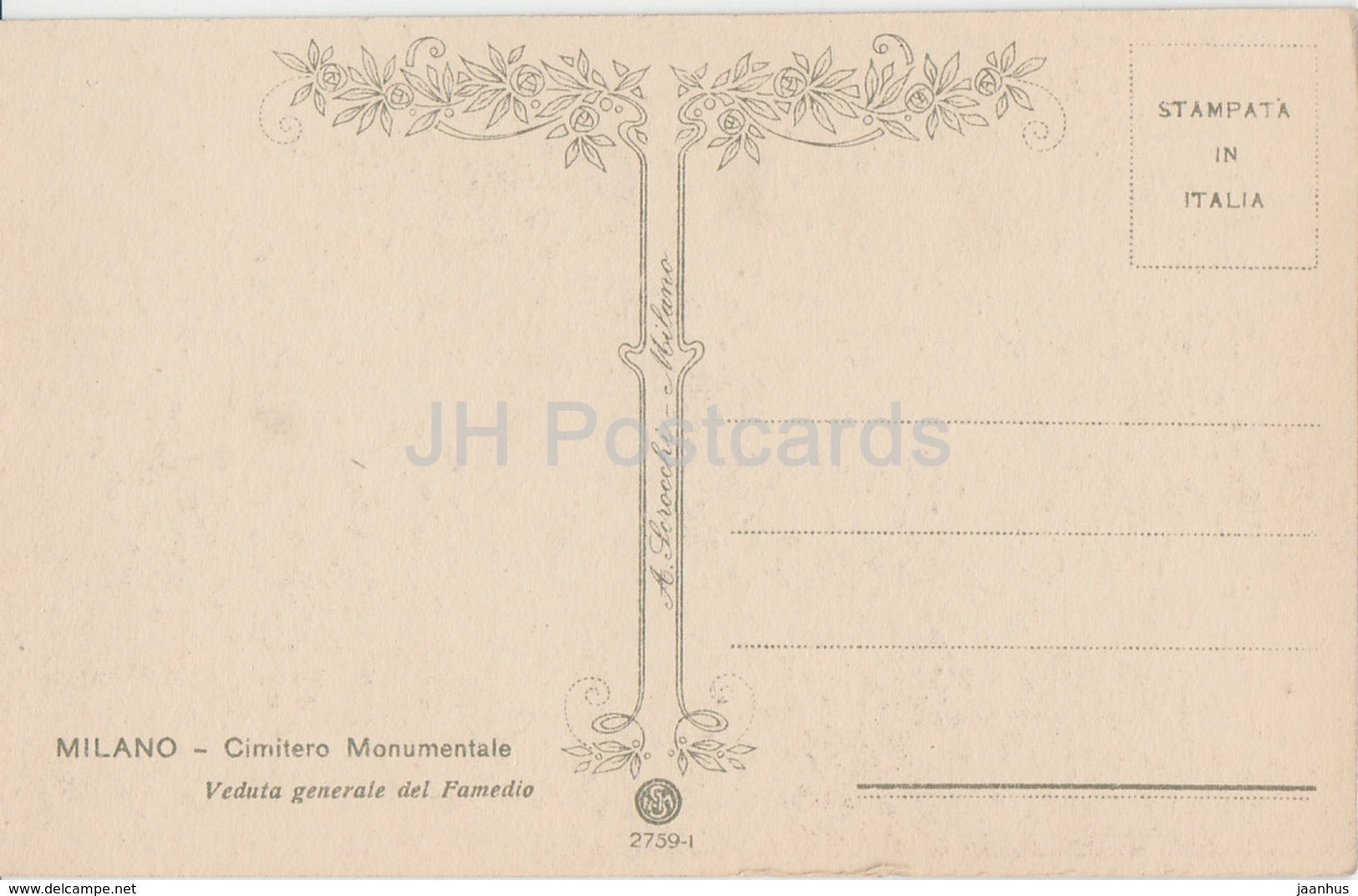 Milano - Milan - Cimitero Monumentale - veduta generale del Famedio - cemetery - old postcard - Italy - unused
