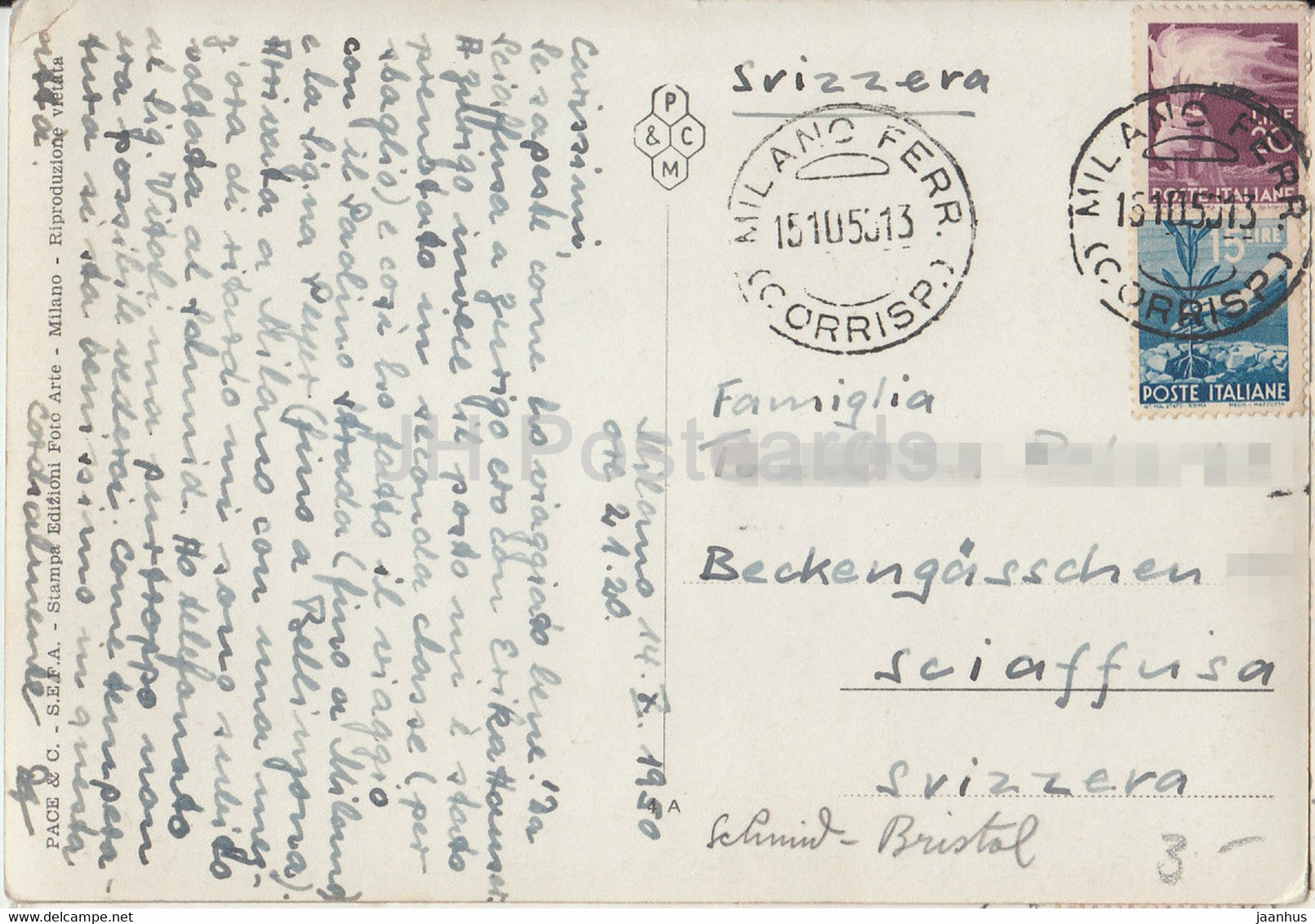 Milano - Milan - Veduta aerea - Stazione Centrale - railway station - 1950 - old postcard - Italy - used