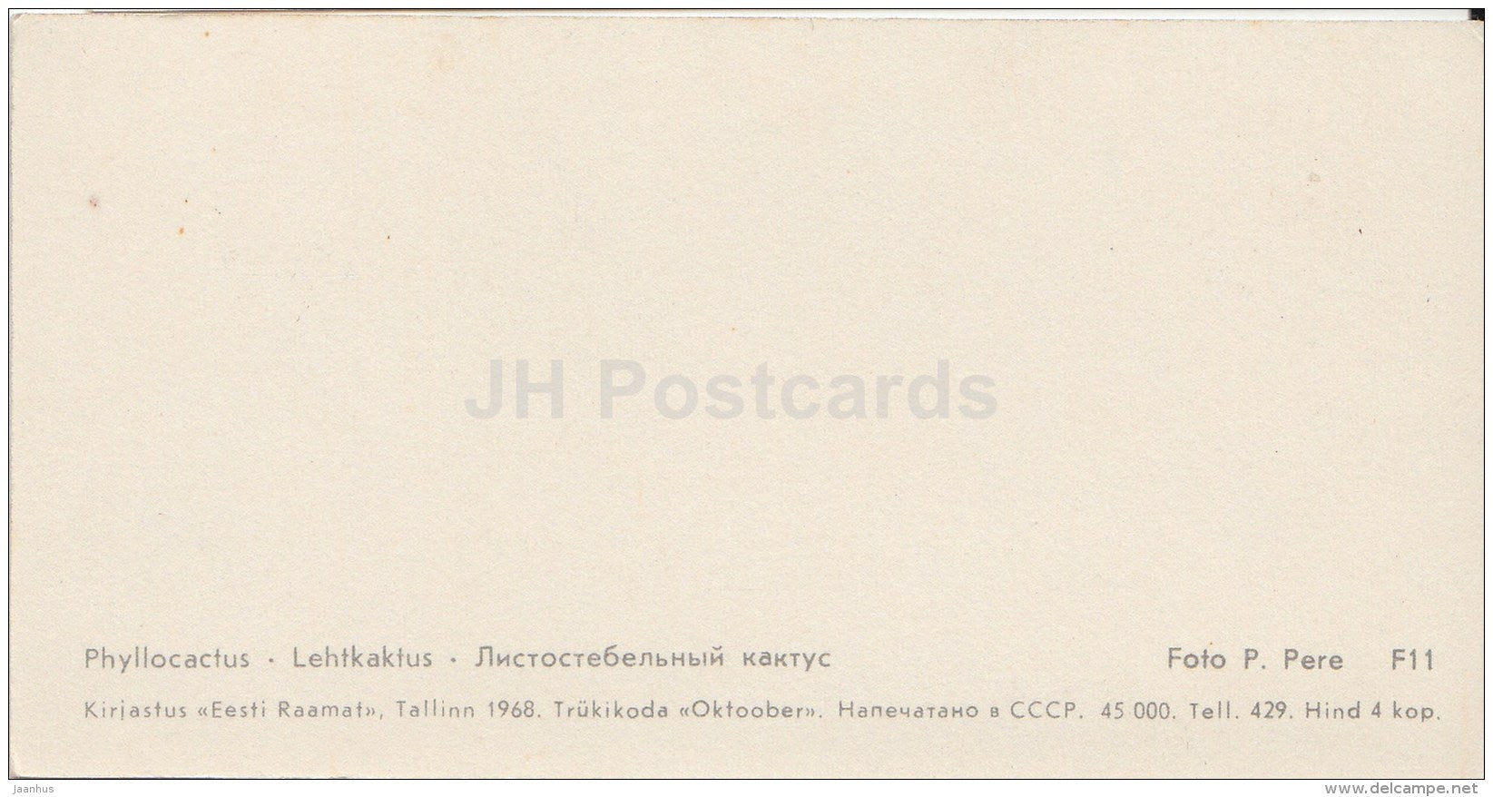 mini Birthday greeting card - Phyllocactus - cactus - flowers - 1968 - Estonia USSR - unused