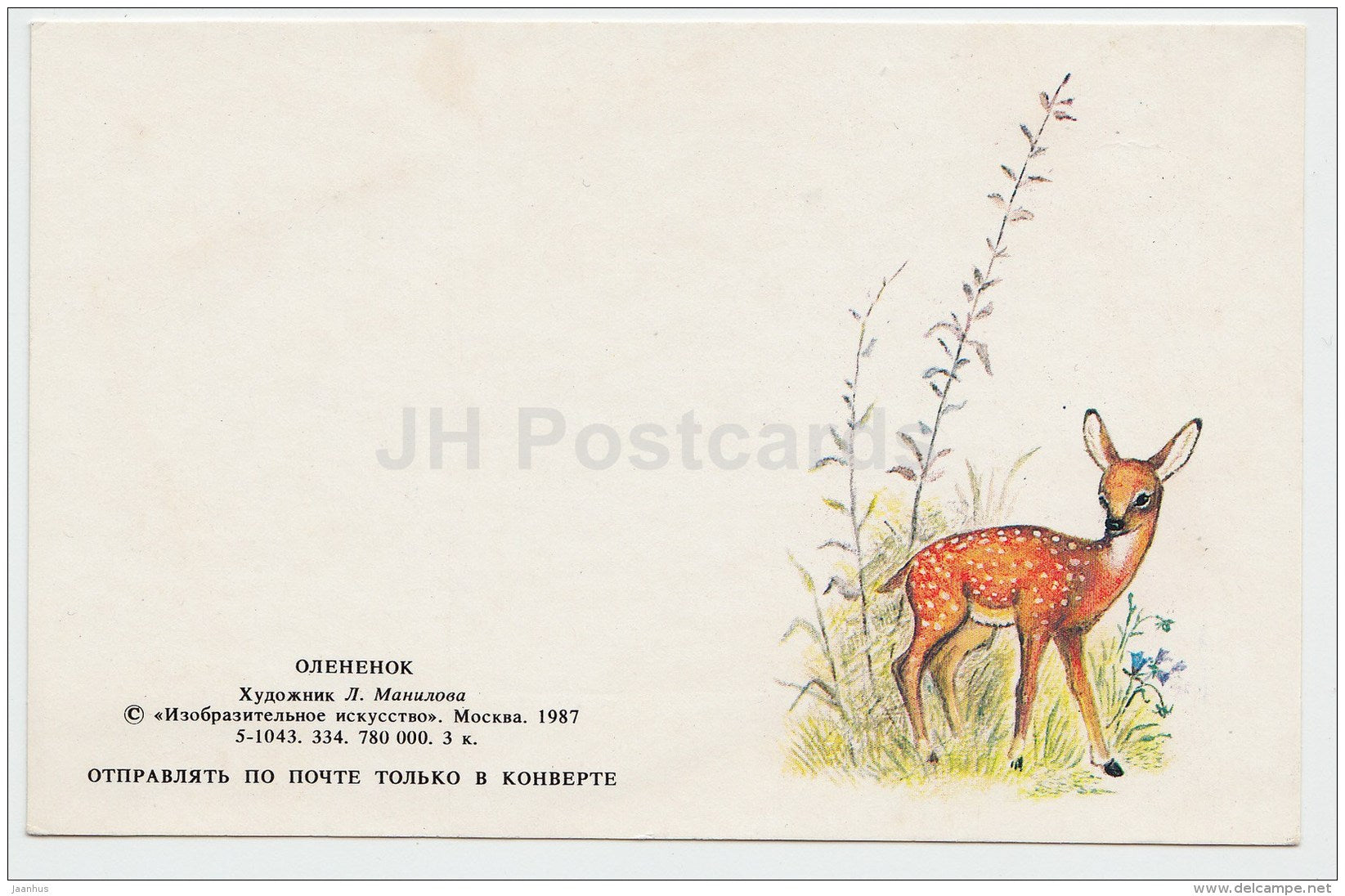 Mini Greeting Card by L. Manilova - deer - 1987 - Russia USSR - unused
